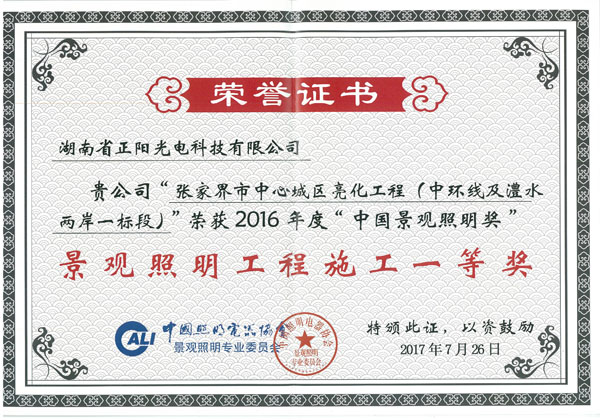 湖南省正陽(yáng)光電科技有限公司是一家從事亮化工程及大型燈光藝術(shù)的設(shè)計(jì)、制作、安裝和維護(hù)于一體的專(zhuān)業(yè)化公司。公司資質(zhì)齊全、管理嚴(yán)謹(jǐn)、技術(shù)先進(jìn)、實(shí)力雄厚,取得了城市及道路照明工程專(zhuān)業(yè)承包壹級(jí)資質(zhì)、照明工程設(shè)計(jì)專(zhuān)項(xiàng)甲級(jí)資質(zhì)、機(jī)電工程施工總承包貳級(jí)資質(zhì)、施工勞務(wù)等資質(zhì)、國(guó)家高新技術(shù)企業(yè)、國(guó)家“重質(zhì)量·守誠(chéng)信”示范企業(yè)。